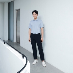 [이지케어]정해인 스판멜란지반팔드레스셔츠_세미
