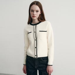 라인배색가디건