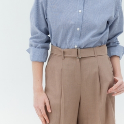 원지안 린넨벨티드원턱반바지