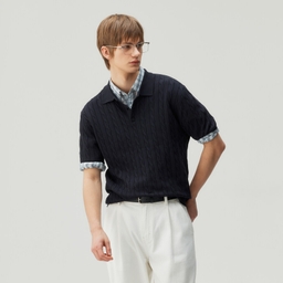 린넨라이크케이블카라세미오버핏반팔니트