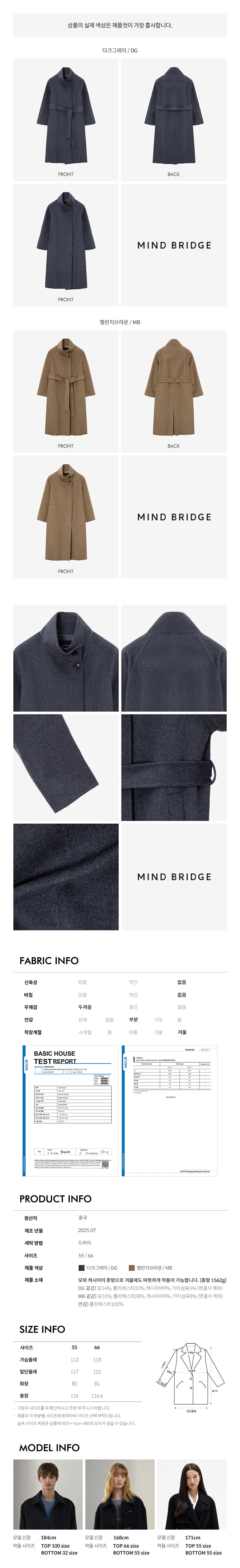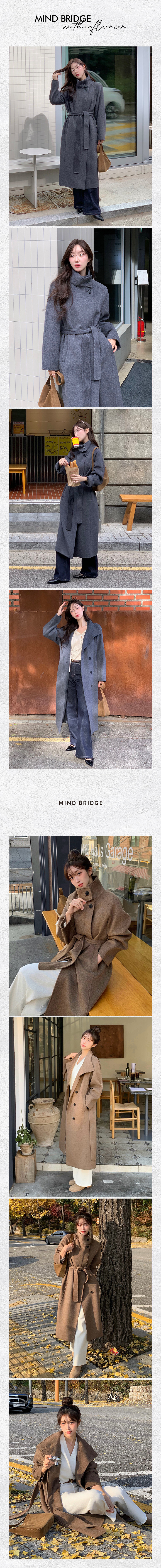 원지안 핸드메이드캐시미어하이넥벨티드롱코트