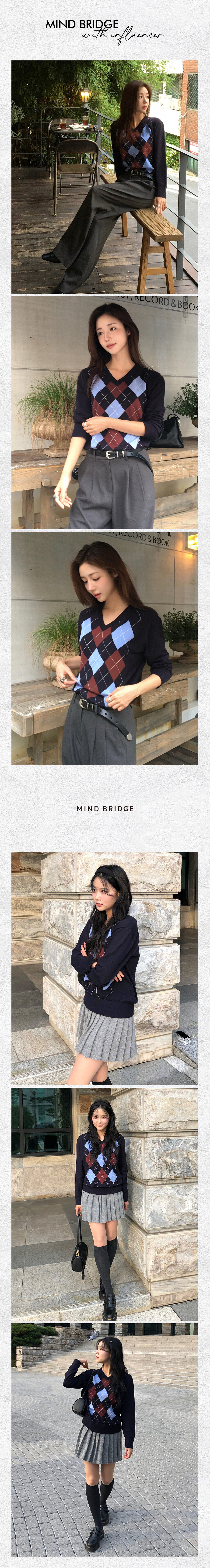 브이넥아가일니트