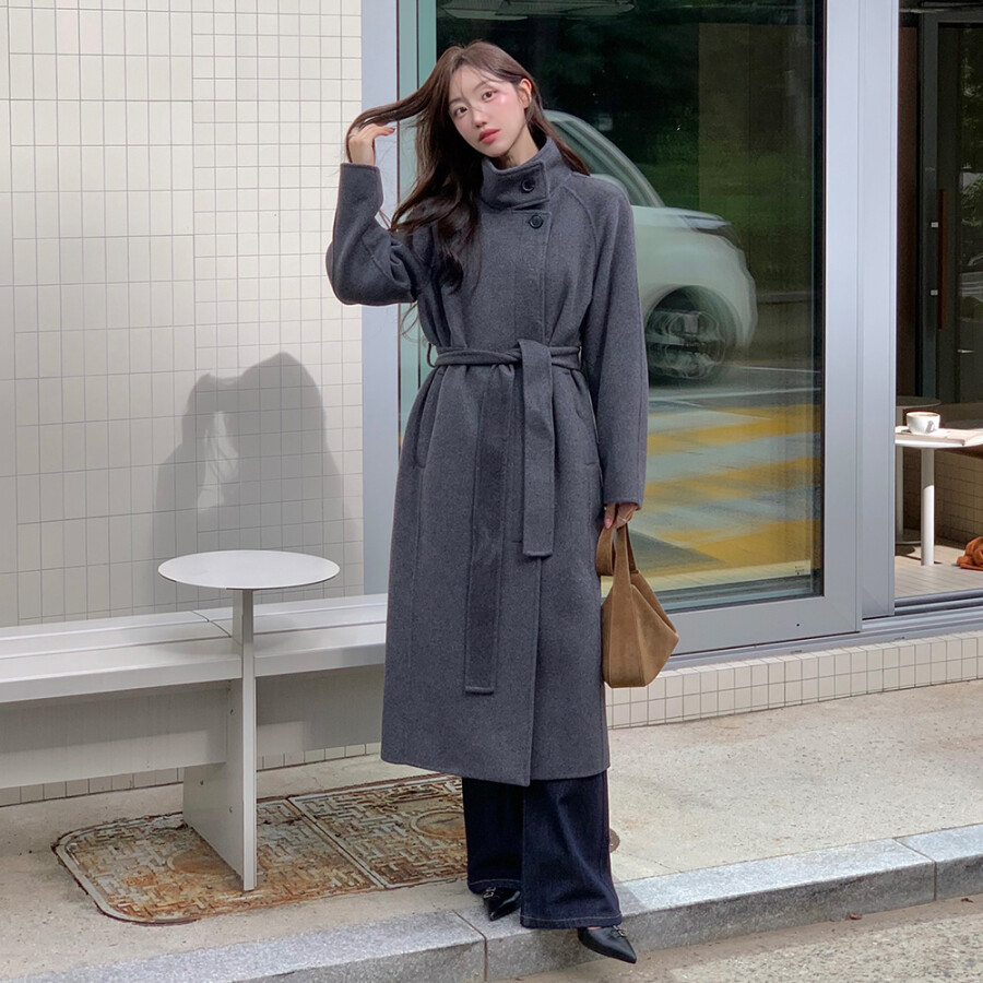 마인드브릿지 원지안 핸드메이드캐시미어하이넥벨티드롱코트
