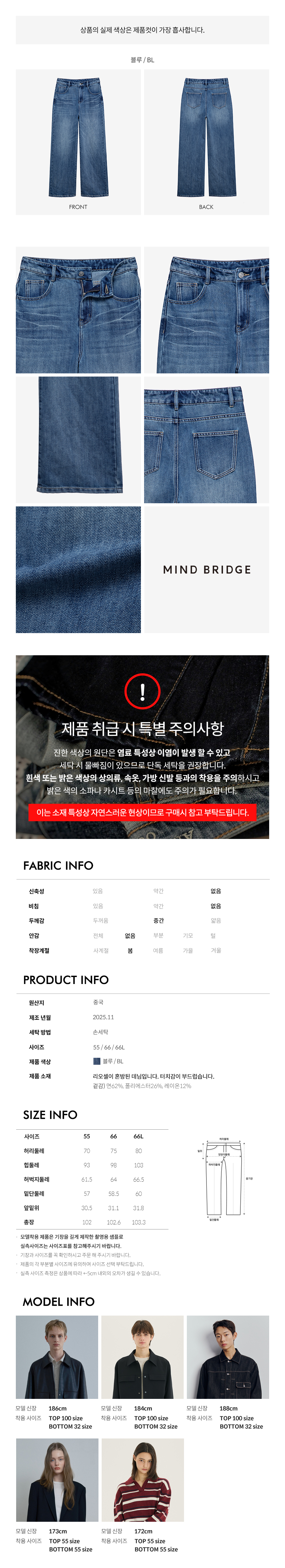 원지안 와이드워싱데님팬츠