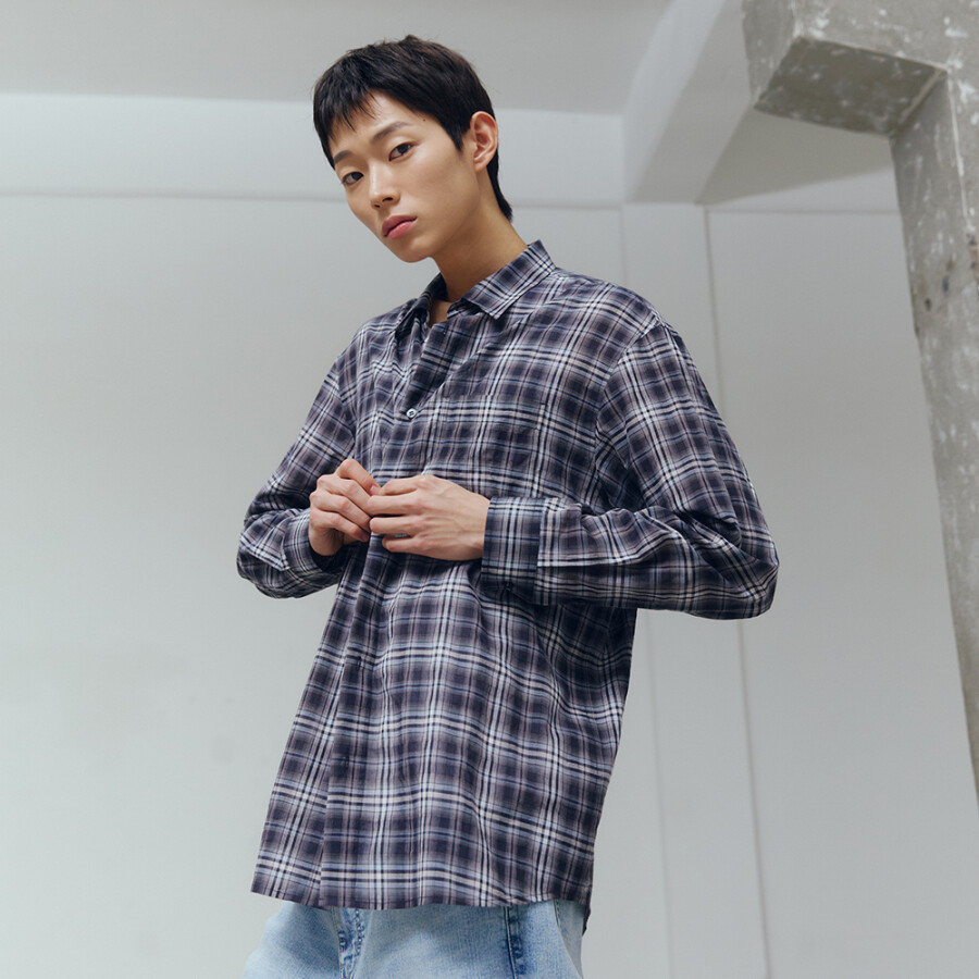 마인드브릿지 ★예약판매★크리즈체크오버핏긴팔셔츠