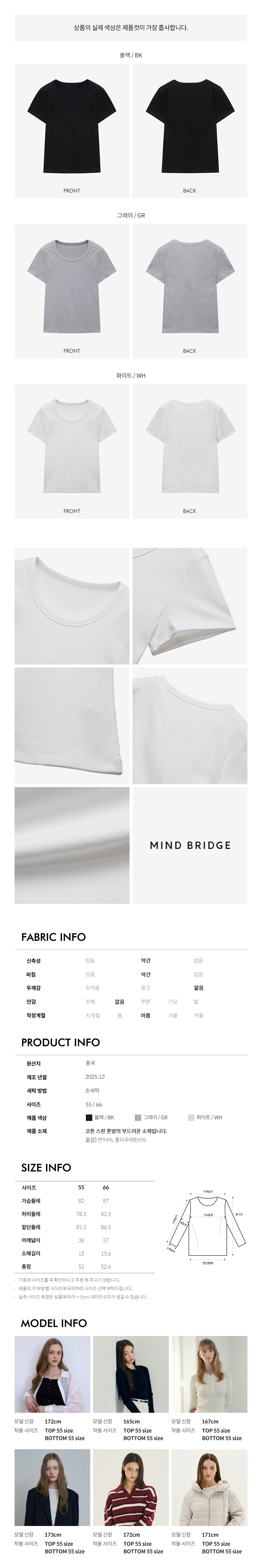 마인드브릿지 U넥슬림핏티셔츠