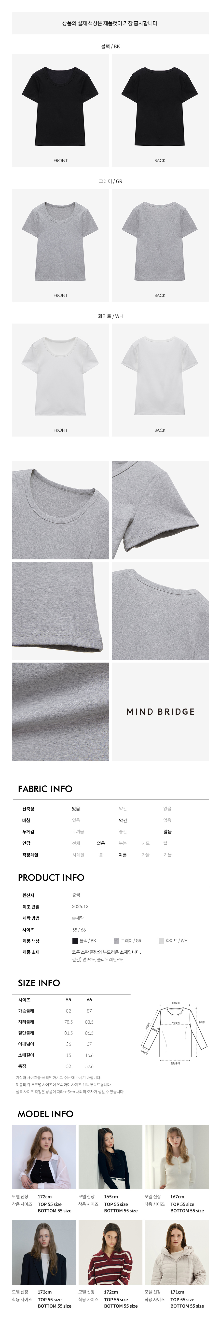 마인드브릿지 U넥슬림핏티셔츠
