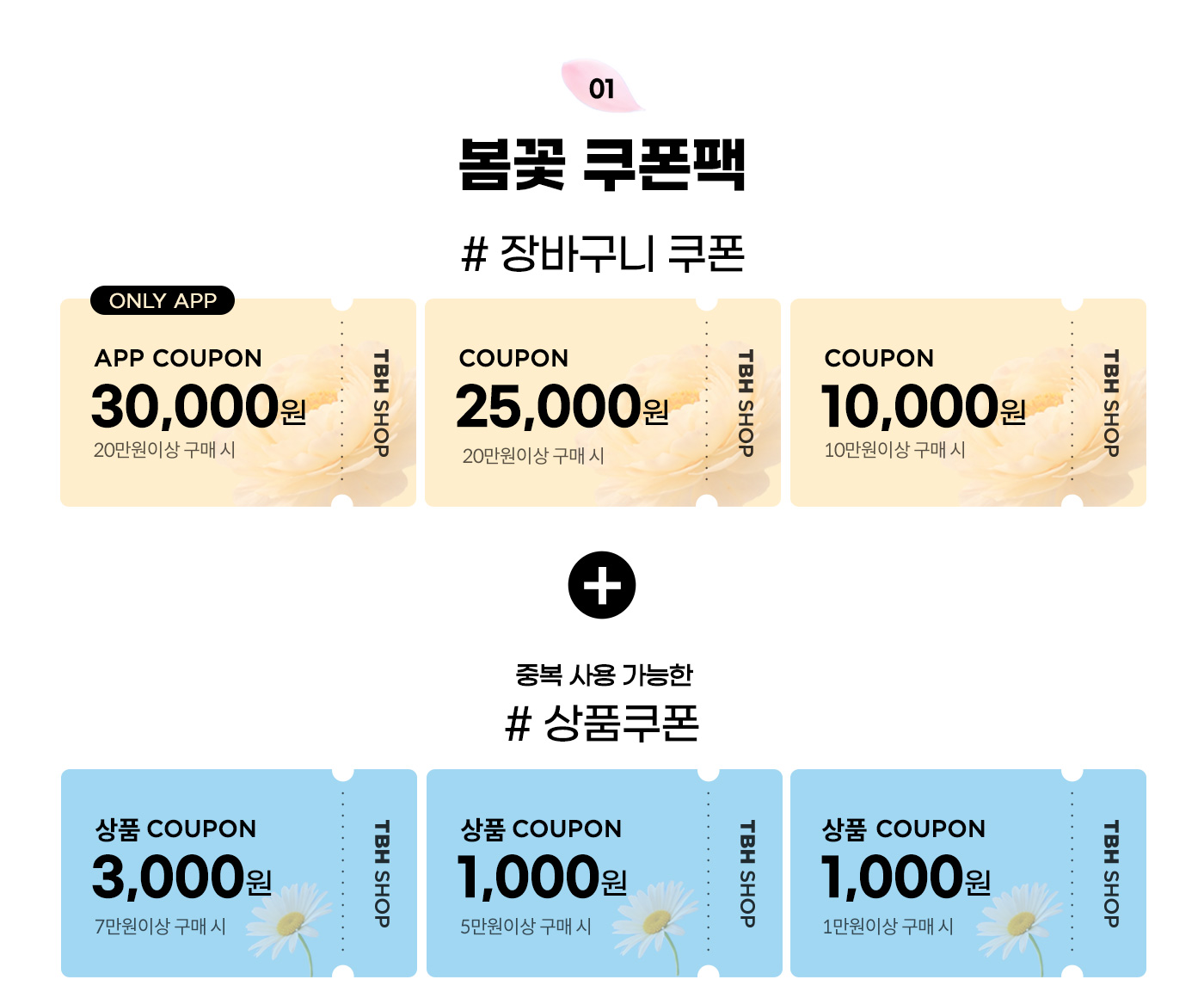 - APP전용 쿠폰은 TBH SHOP APP에서 주문 시, 사용 가능합니다. (PC/모바일에서 쿠폰 사용 불가)