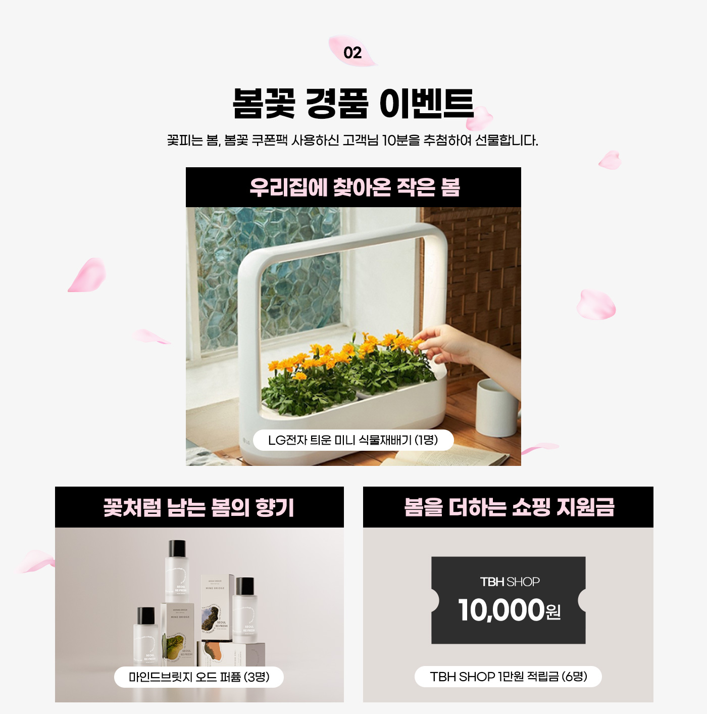 - 당첨자 발표는 4월 24일 (금요일) TBH SHOP 게시판을 통해 발표 및 개별 문자 안내드립니다.